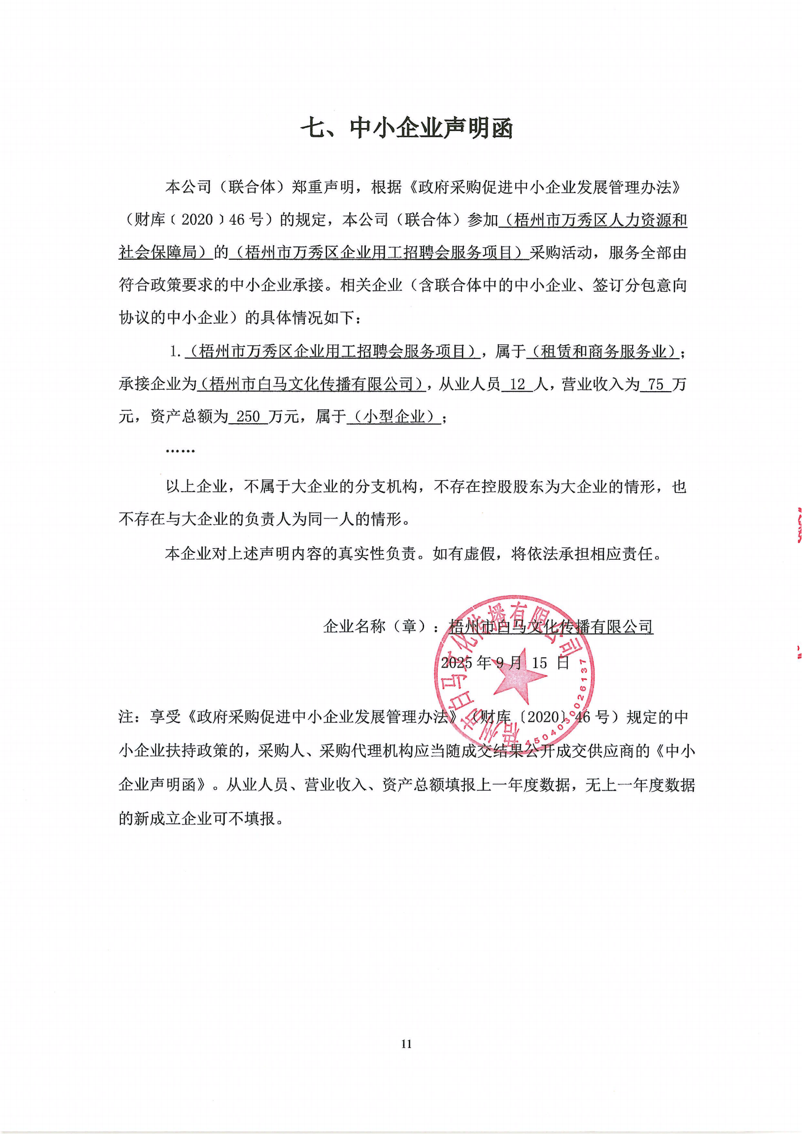 二、項目名稱(chēng):梧州市萬(wàn)秀區企業(yè)用工招聘會(huì )服務(wù)項目